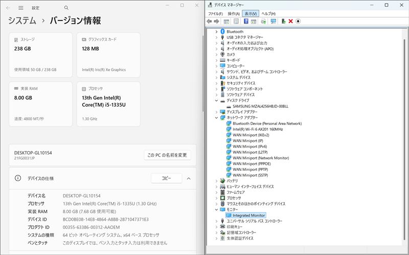 【2023年モデル・高性能PC!!】 第13世代 Corei5-1335U NVMeSSD256GB メモリ8GB Windows11 WPSOffice付 13.3 WUXGA Lenovo L13GEN4