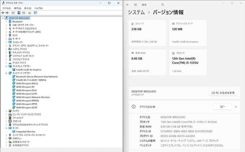 Lenovo L13GEN4【高年式・高性能!】 第13世代 Corei5-1335U NVMeSSD256GB メモリ8GB Windows11 WPSOffice付 13.3inch WUXGA