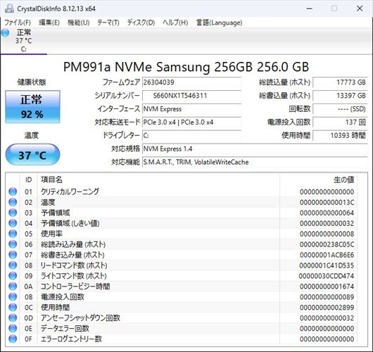 【ストレージ】 NVMe SSD 256GB