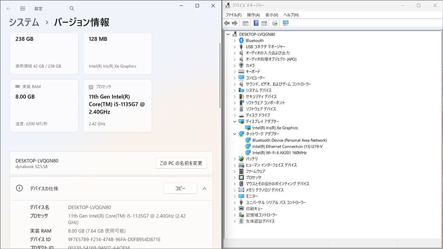 【特別価格品!!高性能高年式モデル!!】 第11世代 Corei5-1135G7 NVMeSSD256GB メモリ8GB 13.3inch Windows11 カメラ WPSOffice Dynabook SZ/LSB